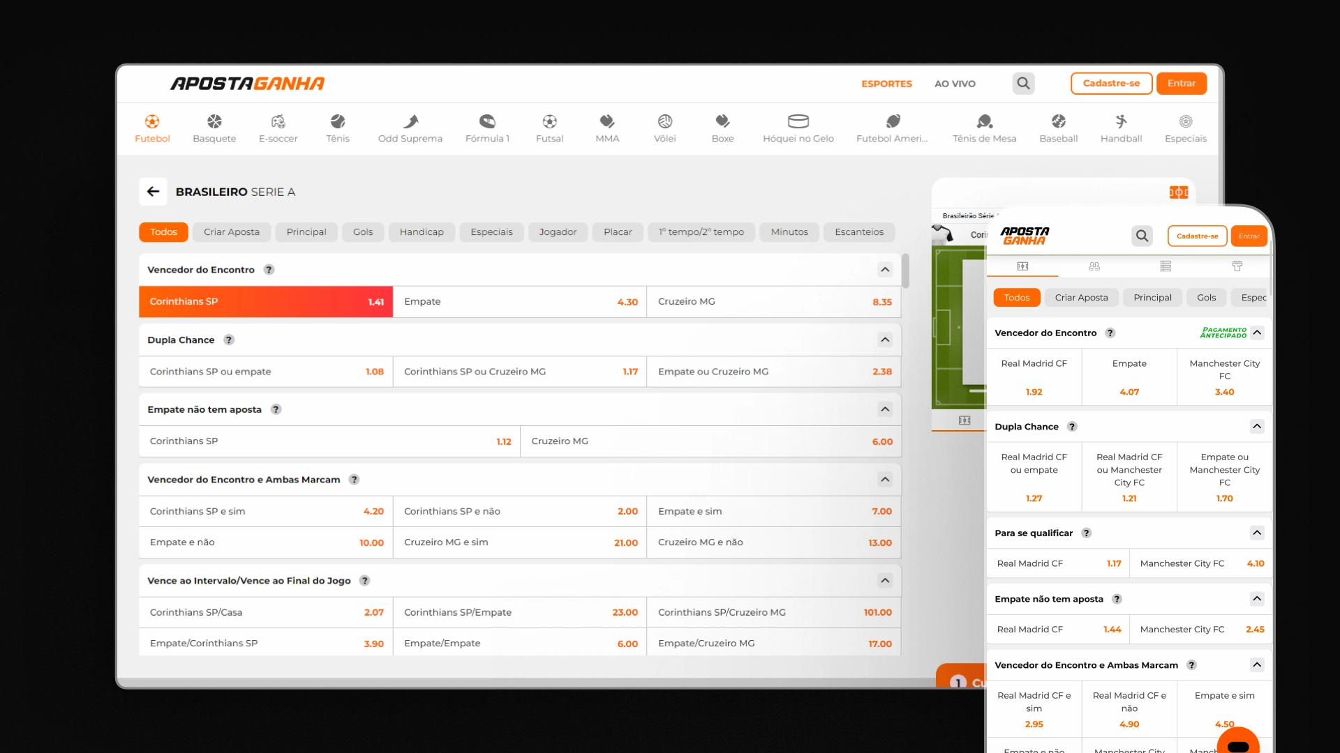 | Mercado 1×2 | Aposta Ganha | Superbet | Bet365 |