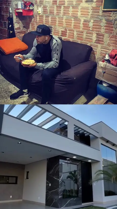 Na segunda imagem, Poatan escreveu: "A casa hoje. Muito obrigado, meu Deus.", em uma foto que mostra que a casa se tornou uma mansão de dois andares, com grandes janelas e um belo mármore à vista, em mais uma demonstração de amor e reconhecimento aos pais, que certamente trabalharam duro para sustentar Poatan e seus irmãos.